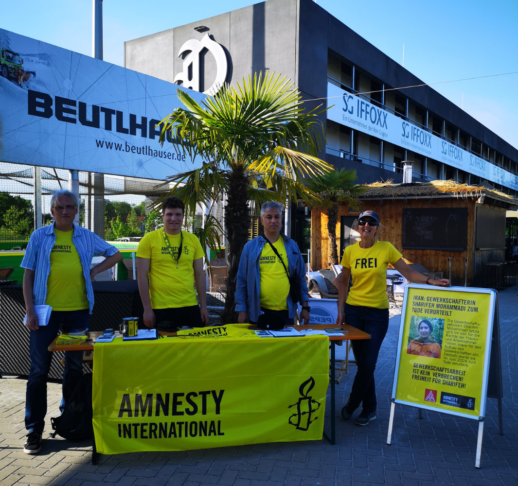 Wir werden wieder zu Sharifeh Mohammadi informieren und Unterschriften sammeln, die an die iranische Botschaft in Berlin gehen.